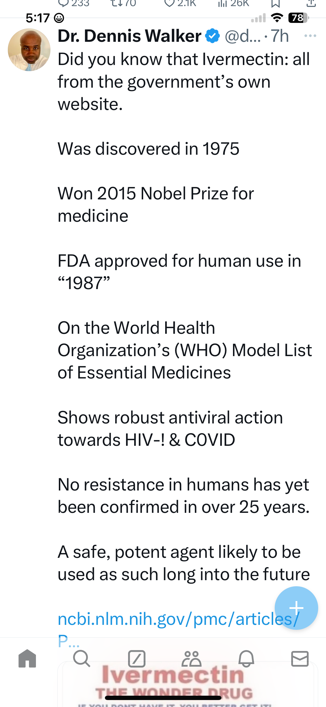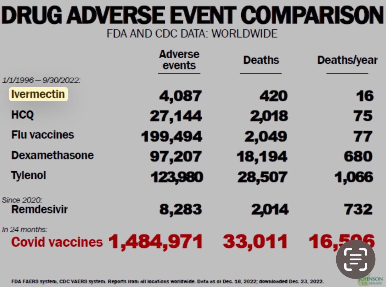 Now I dare, actually I double dare you to look into all the uses for Ivermectin that is occurring in the world. I also urge you to keep an open mind for other long term medications and supplements that are being studied/used for multiple purposes, not just the single use that brought it to market.