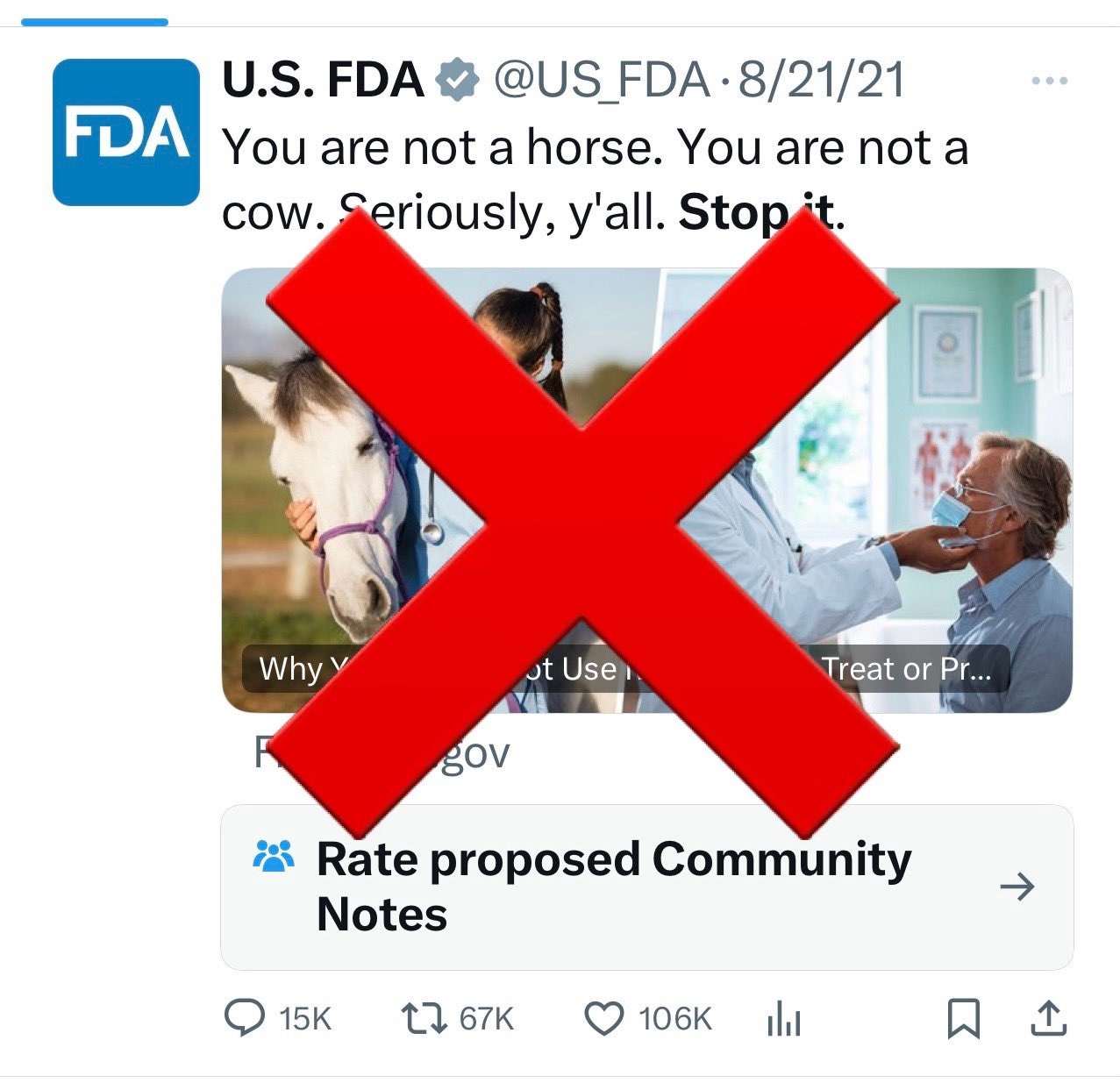 The above was a famous tweet from the FDA, which shall I say was proven to be wrong as well as illegal as the FDA was sued in court and lost and had to remove this famous tweet.